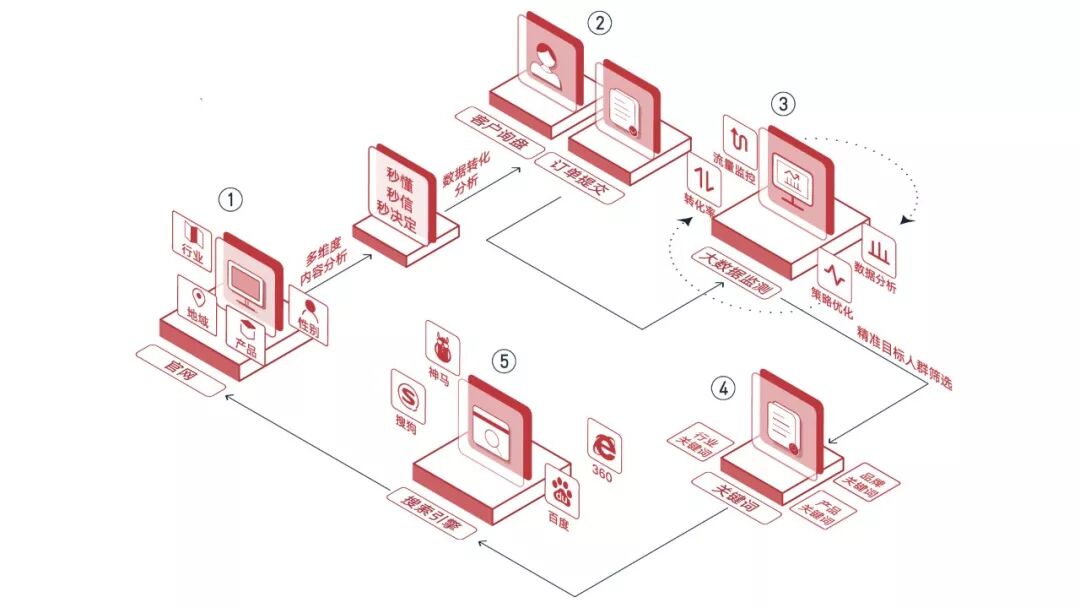 2、品牌曝光:背靠搜索引擎亿级用户量,能产生大量精准曝光,长期首页展示,获得客户信任度,提升熟悉度。3、主动沟通:搭建百度商桥、QQ等即时通讯渠道,随时随地进行线上沟通,主动推送系统消息给访客,引导顾客与客户进行沟通4、用户数据采集:后台获取访客基本信息,为客户开发提供数据依据。6、O2O营销模式:实现线上引流,线下成交的销售模式,开源拓客。