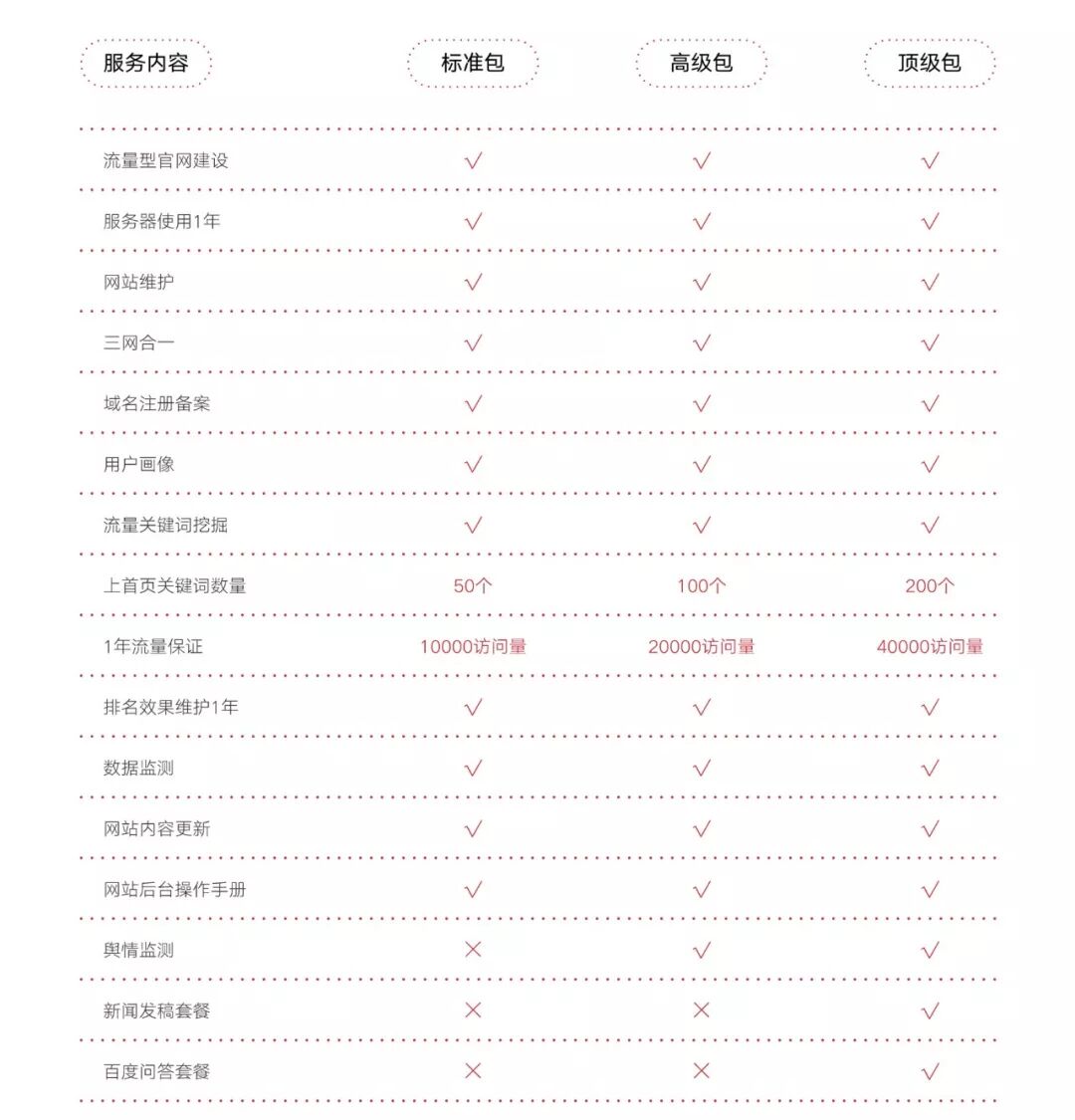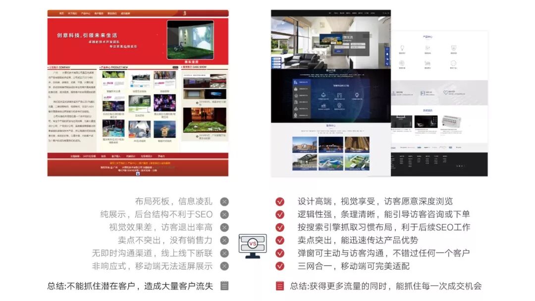 流量型官网:主动营销型,自带搜索流量,具有展示、营销、引流功能,匹配用户搜索关键词展示,长期自动曝光保证客流,促进成交转化。