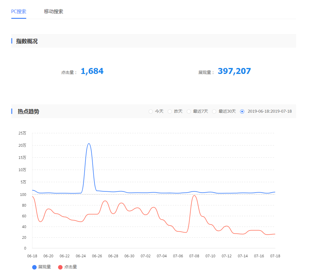 一个月内,官网有397207次曝光,有1684次潜在客户点击。